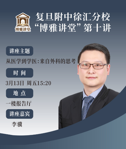 2026年3月13日下午,复旦附中徐汇分校“博雅讲堂”第十讲在报告厅正式开讲。复旦大学医学院外科学教授、博士生导师李骥教授以《从医学到学医:来自外科的思考》为题,为在场师生带来一场跨越两百年外科发展史的医学人文盛宴。